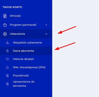 - Kliknij Dane abonenta